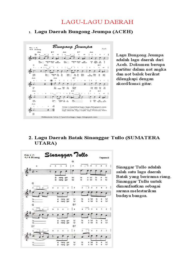 LAGU LAGU DAERAH . Sumber Gambar : www.scribd.com