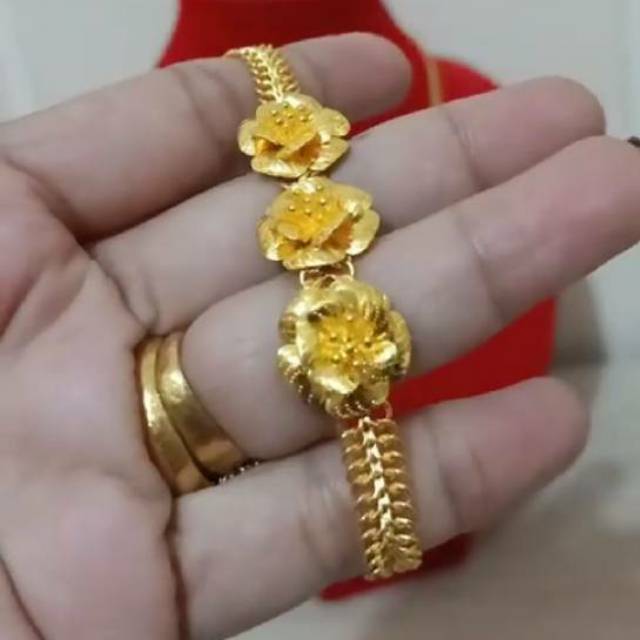 Gelang bunga Mawar Emas LM London 24K kadar 99 9 Shopee Sumber : shopee.co.id